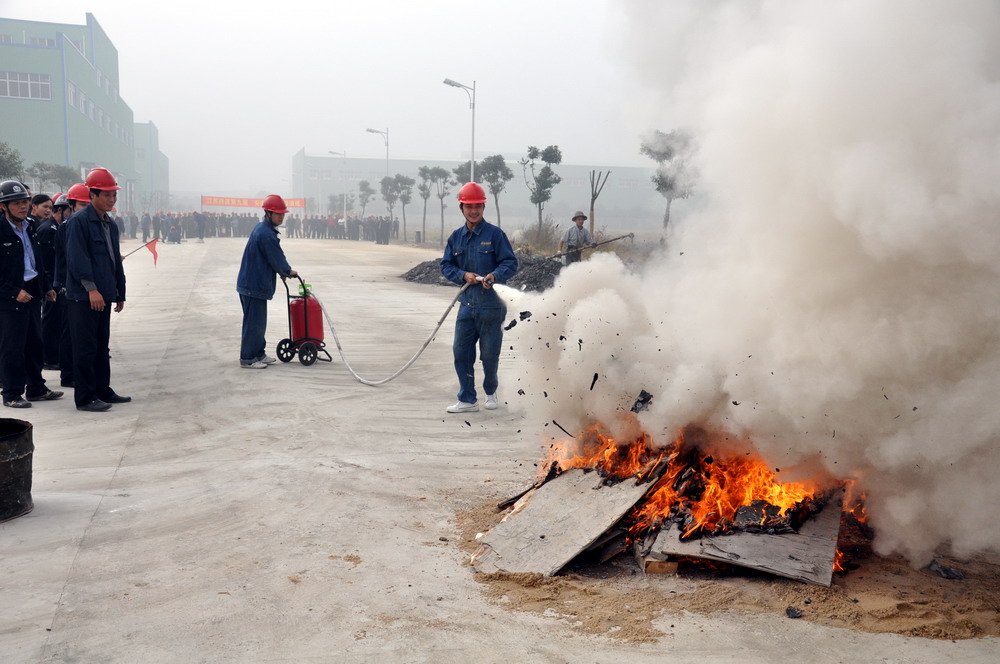 为了进一步提高全员安全思想意识及事故应急处置能力,在前期宣传动员下,由安保部组织并承办的江苏共昌第九届“安康杯”消防演练活动于2009年10月26号上午9点在三期中心大道拉开帷幕。公司董事长、总经理邵顺才先生委托公司常务副总黄华根先生作开幕式讲话,邓柏林先生代表镇安委会作重要讲话。随后在安保部长徐明辉同志的一声令下,演练开始。通过紧张有序的演练,于10时38分落下帷幕。 这次活动是我公司举办消防演练活动历届以来规模最大的一次,到场指导及观摩的有镇政府、安委会、人武、环保、派出所、公司主要领导及部分员工代表。充分说明政府对安全生产的重视,也是企业落实责任的一种具体表现。通过本次演练活动的开展,我们将按照环境/职业健康安全管理体系支持性文件要求,以消除隐患、保障安全为安全生产工作中心,加强安全生产教育培训,以开展各种活动形势来提高员工的安全思想意识,为公司又好又快发展和安全生产的周期延长夯实基础。这次消防演练活动经有关部门及专业人士评价为成功有效。